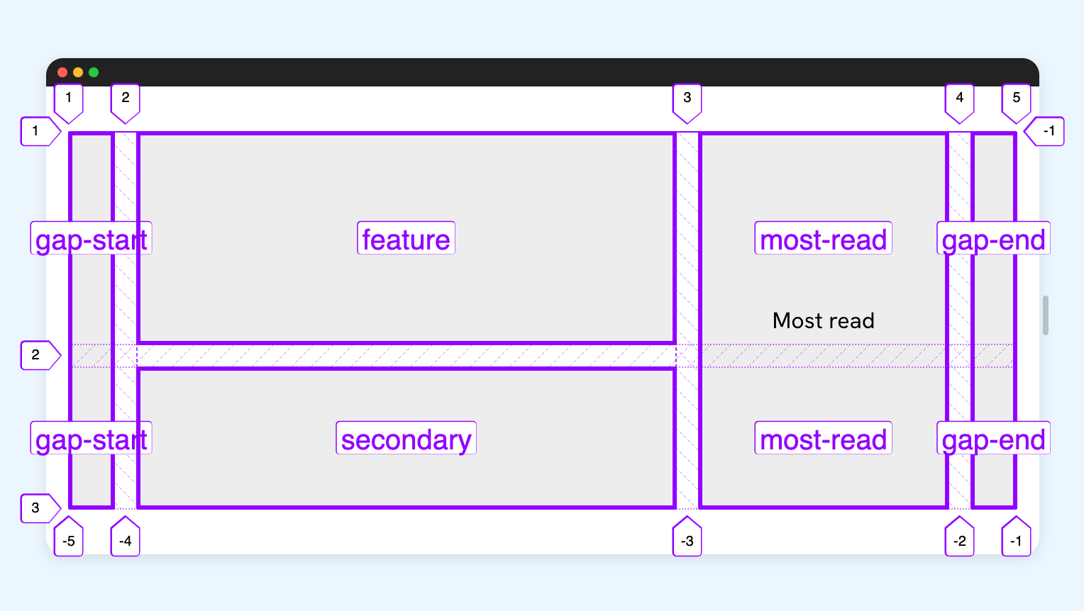 - Naming Your CSS Grid Lines:I found this article helpful as I struggled to understand how named lines work.