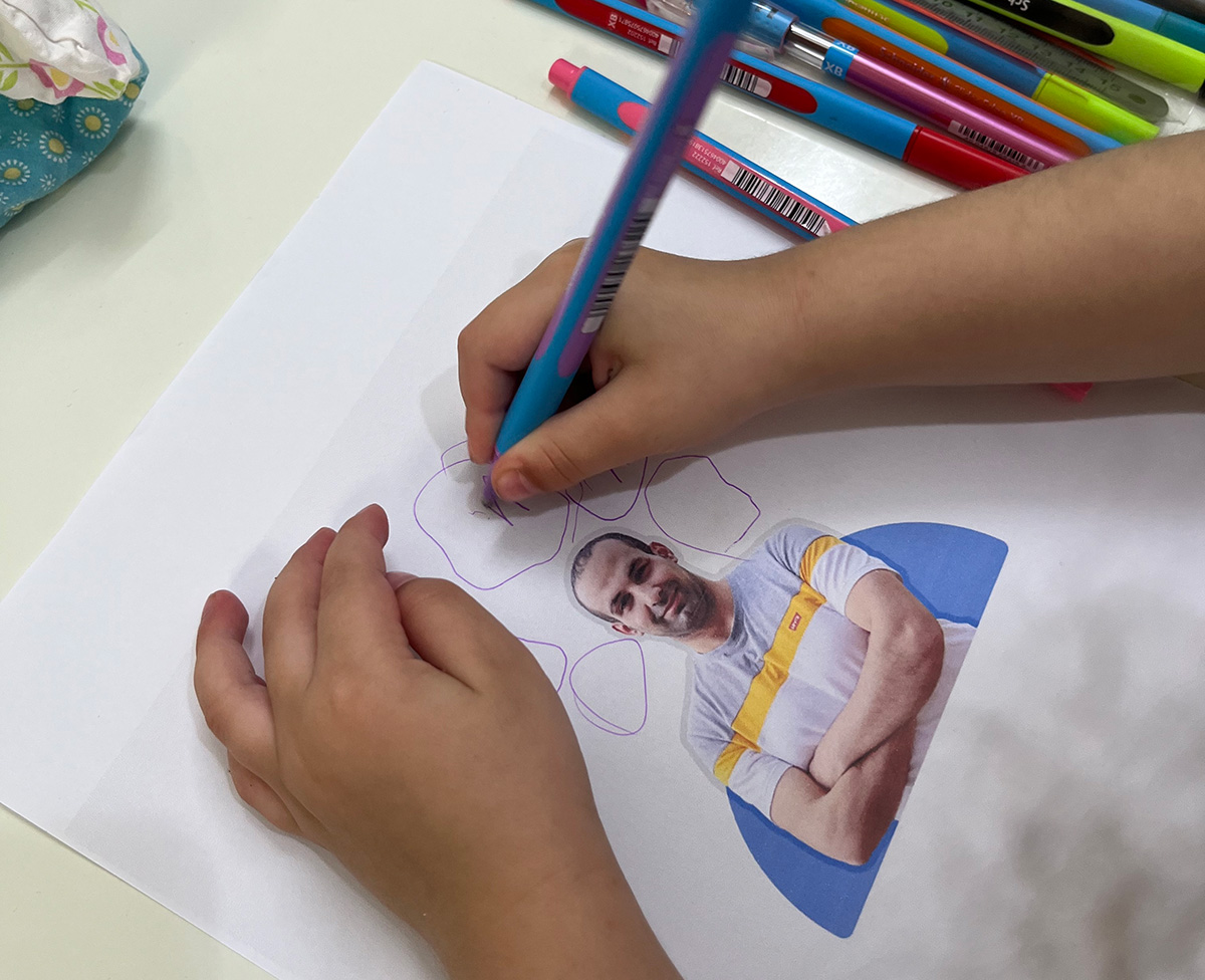 I took my photo printed it and asked my daughter (Alma) to draw something on my photo.
