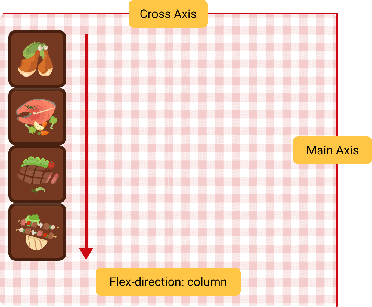 When the flex direction is flex-direction: column, the plates will be displayed vertically.