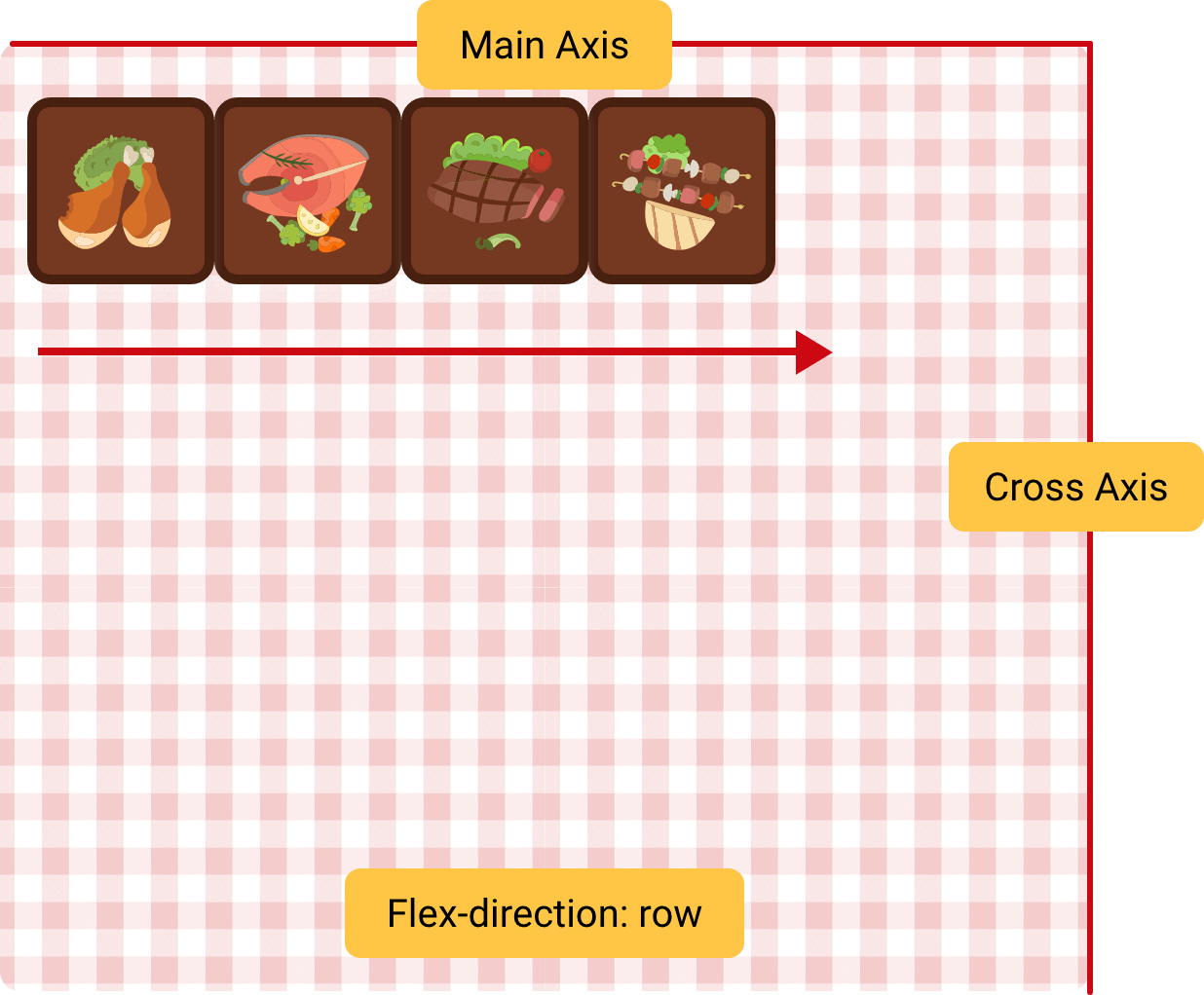 Notice that the plates are next to each other. Since flexbox is a single layout direction, the flex items are either aligned in rows or columns. The default is rows.